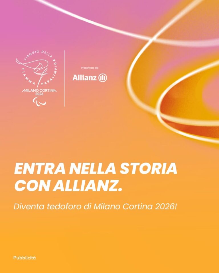 Allianz è orgogliosa di essere Presenting Partner del viaggio della Fiamma Paralimpica, simbolo di determinazione, resilienza e inclusività. Un viaggio che ci avvicina ai Giochi