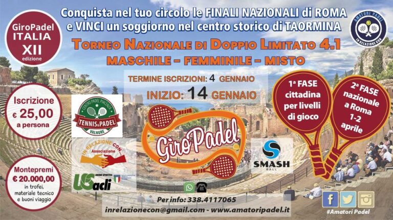 🏠 Abiti nella provincia di PIACENZA e dintorni ? 🎾 Vuoi partecipare alla XII Ed. GiroPadel, dal 2017 l’evento amatoriale che si svolge nei circoli