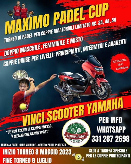 💥 Tennis & Padel Club Valnure – Centro Padel Piacenza 🔥 Aperte le iscrizioni al Torneo degli SCOOTER 🤩 👉 Giochi, ti diverti e vinci