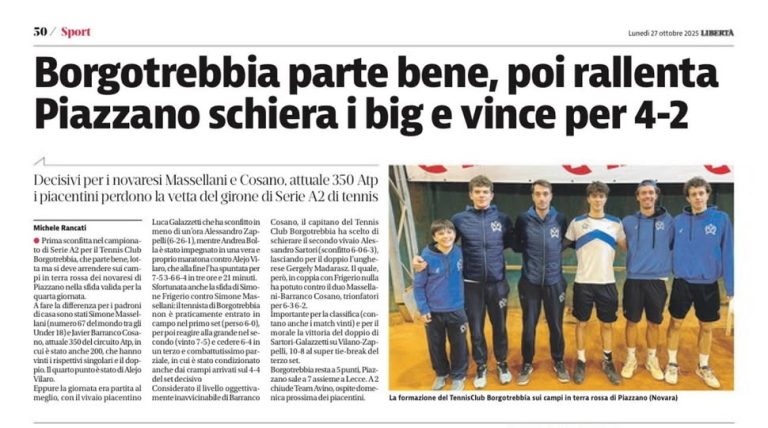 🏆 Prima sconfitta nel campionato di A2 Maschile per il Tennis Club Borgotrebbia! I padroni di casa del Tennis Piazzano…