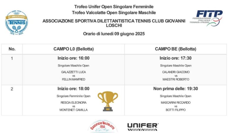 Alle 17:30 ci sarà anche l’ultima semifinale maschile di 3° categoria.